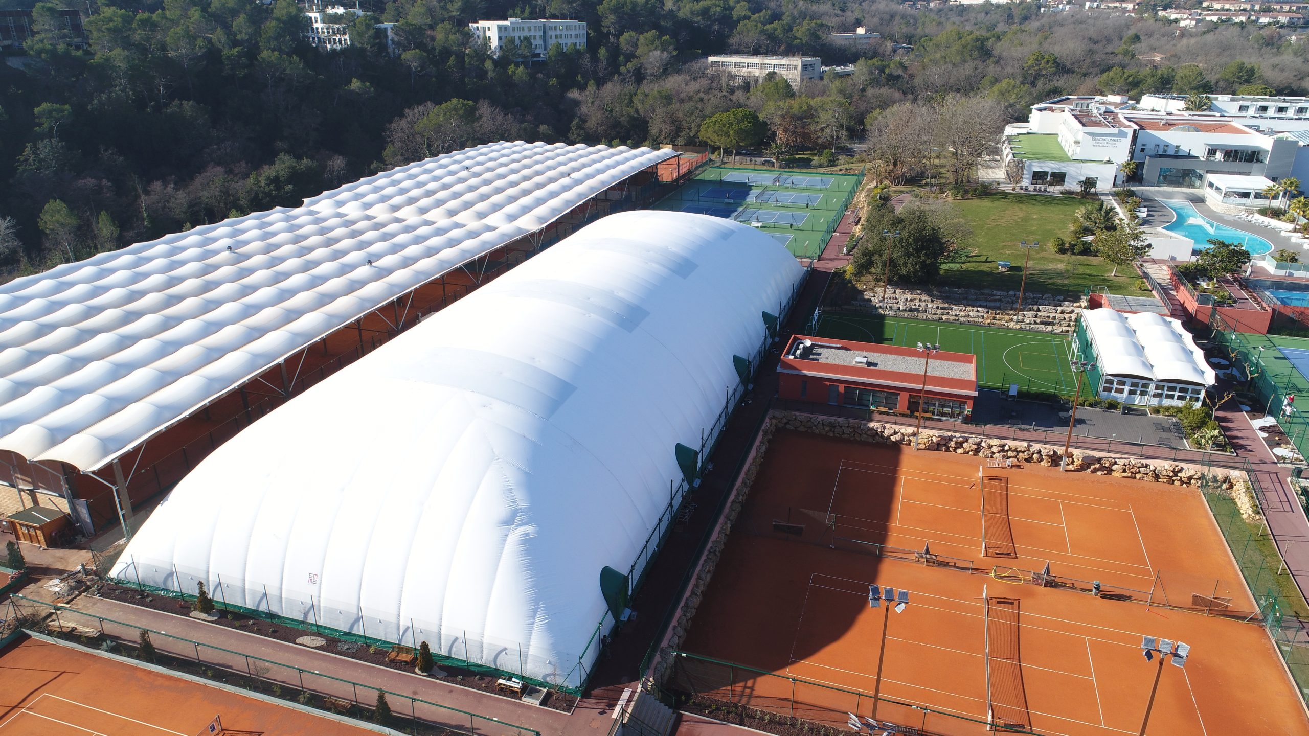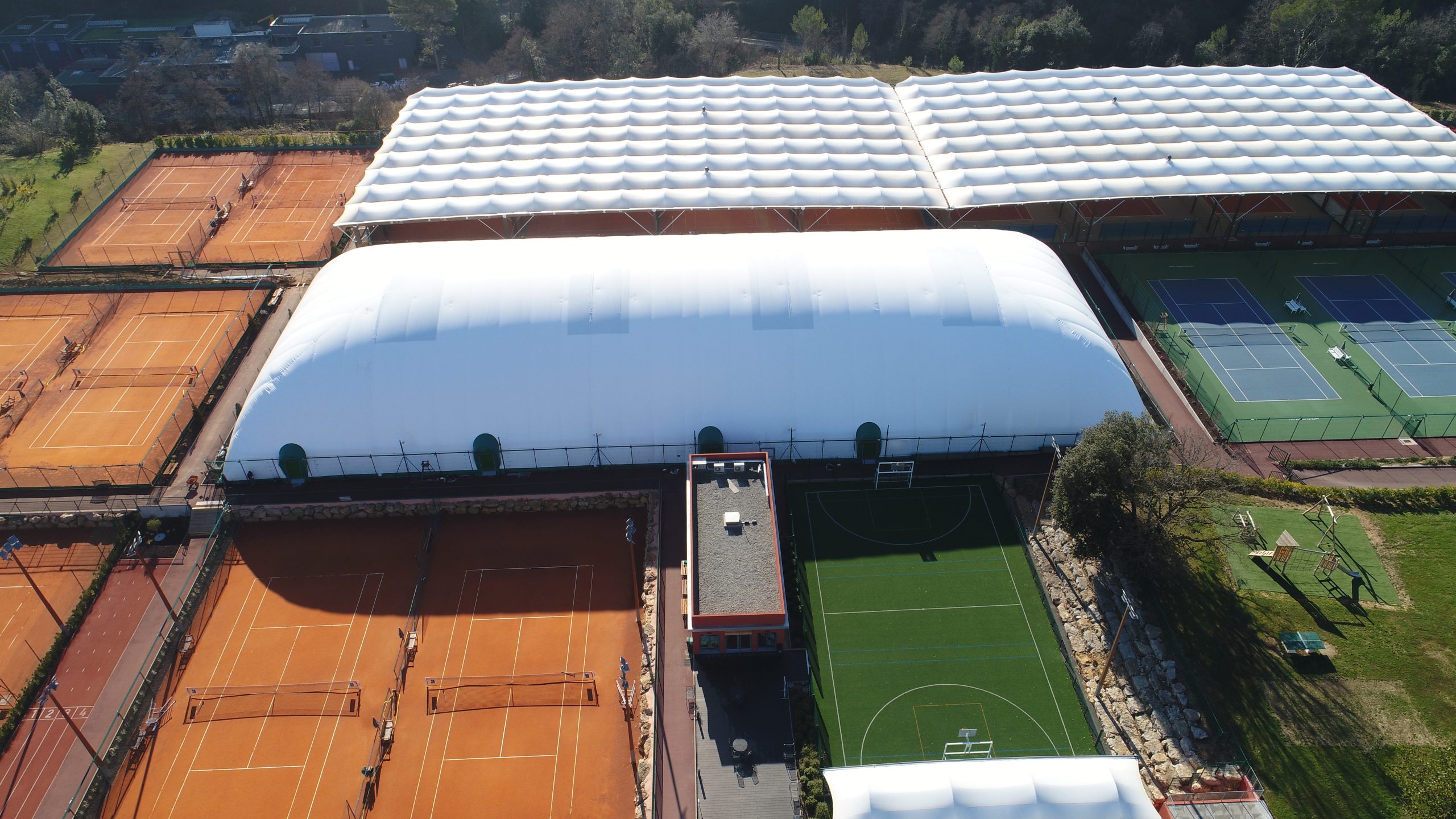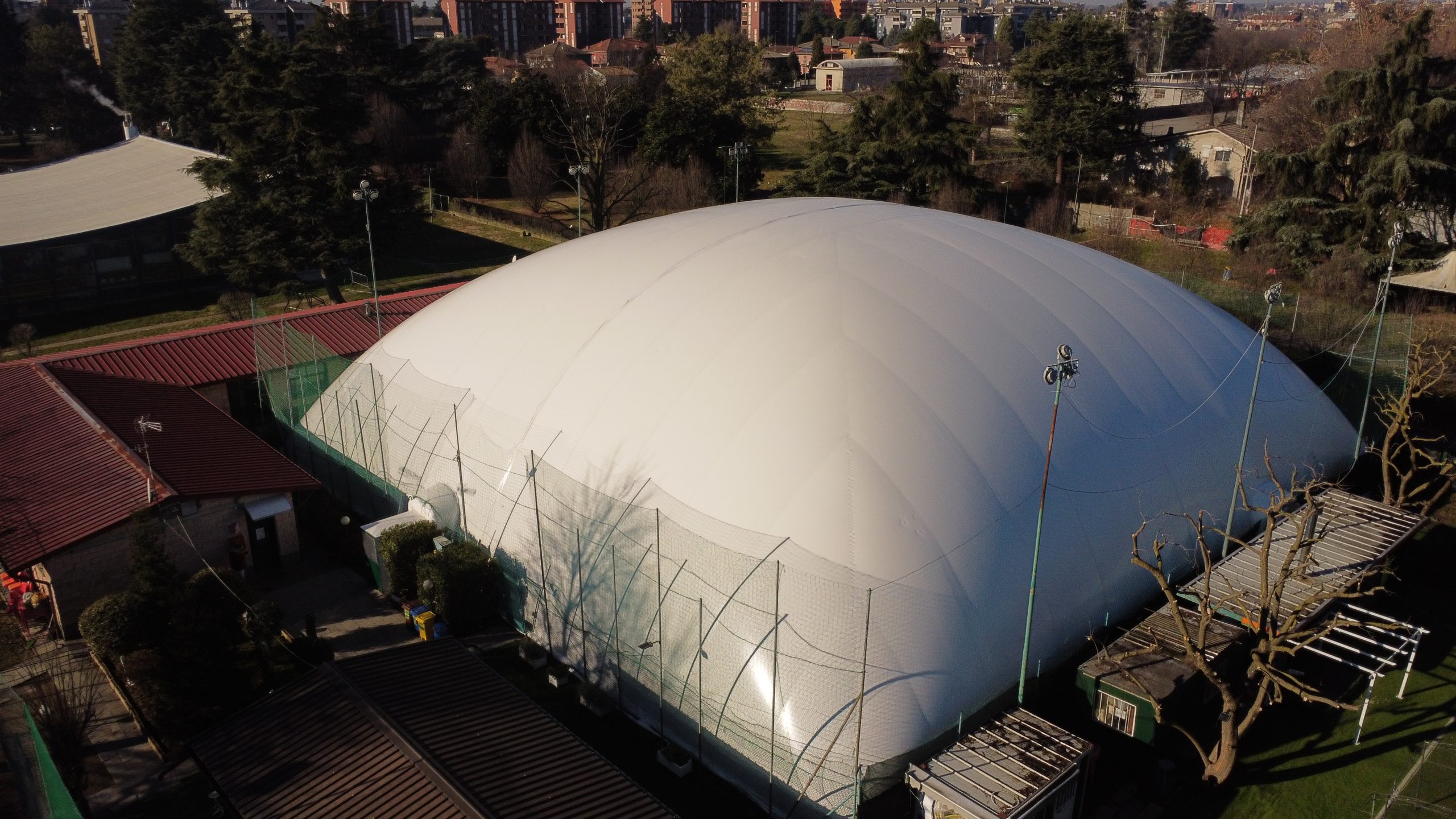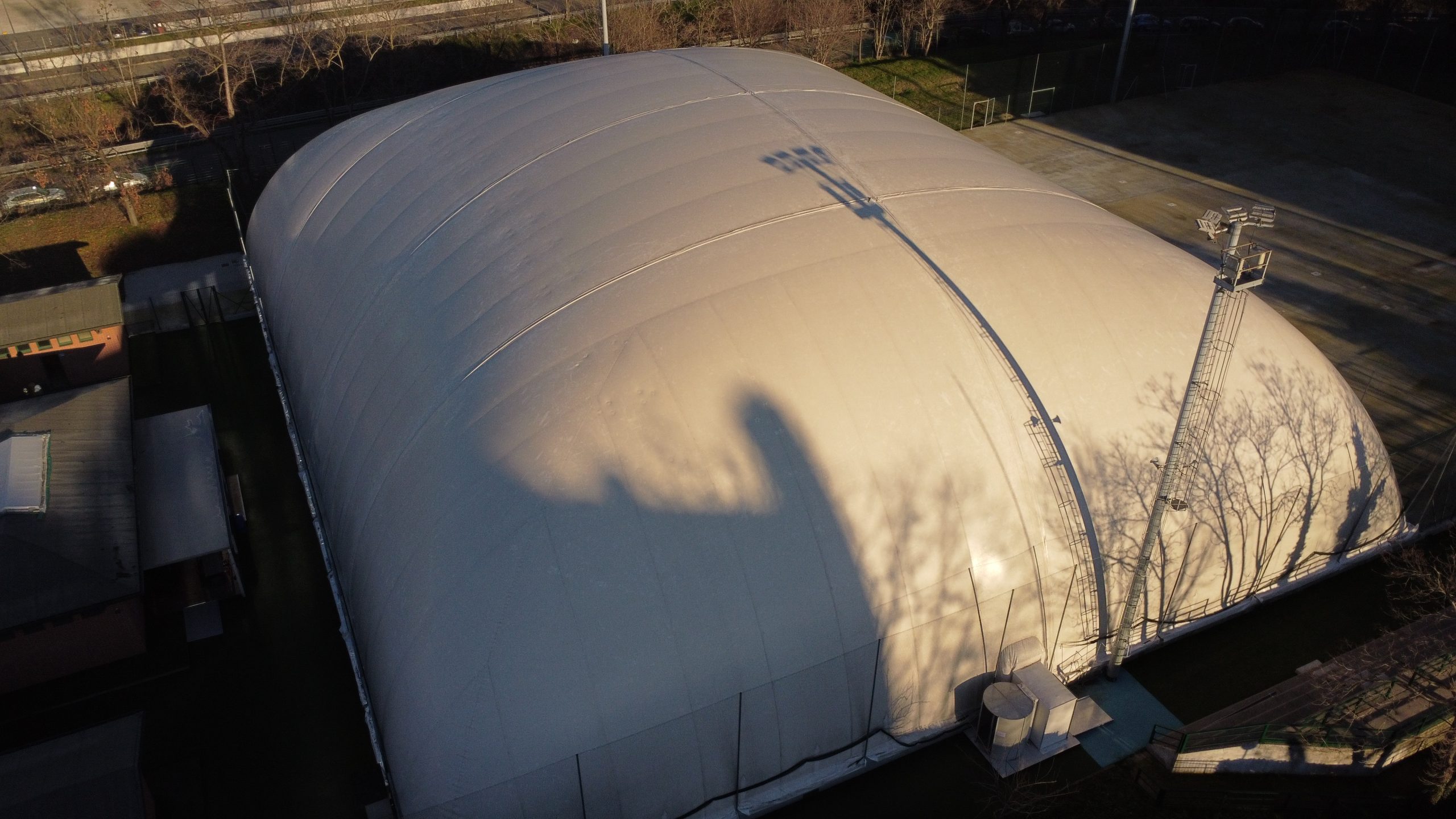 La copertura pressostatica è una copertura telo gonfiabile sostenuta e stabilizzata da una leggera pressione interna.